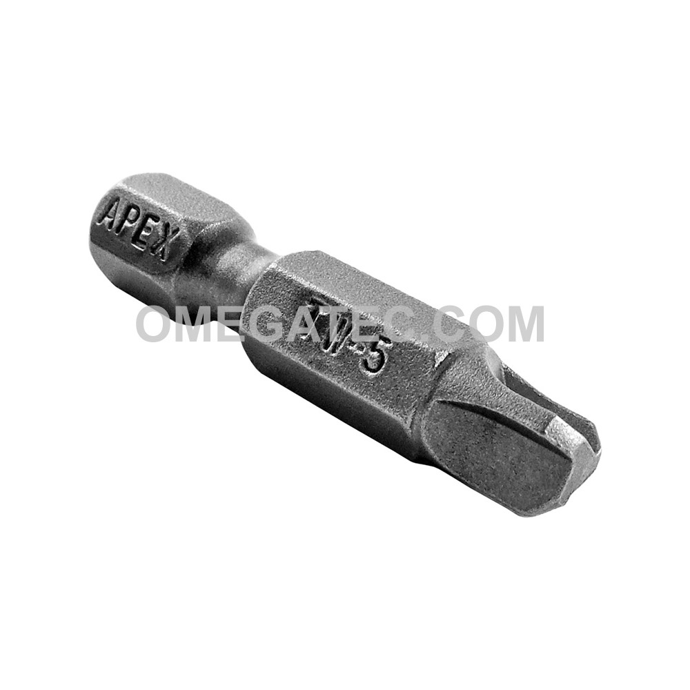 Apex Tri-Wing ® bits. The Tri-Wing bit, also known as triangular slotted, screw drive has three radial slots. Tri-Wing, as the name suggests, is a screw with three ”wings” and a small triangular hole in the center. Quality design and construction give Apex Tri-Wing bits a long service life and durability. With Apex Tri-Wing bits you are assured of high quality and industrial strength.