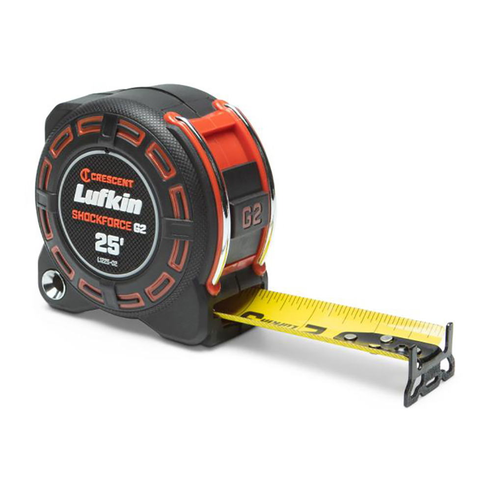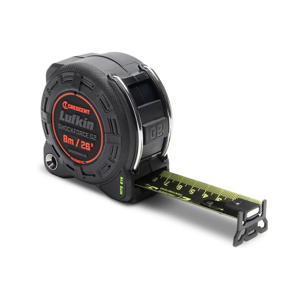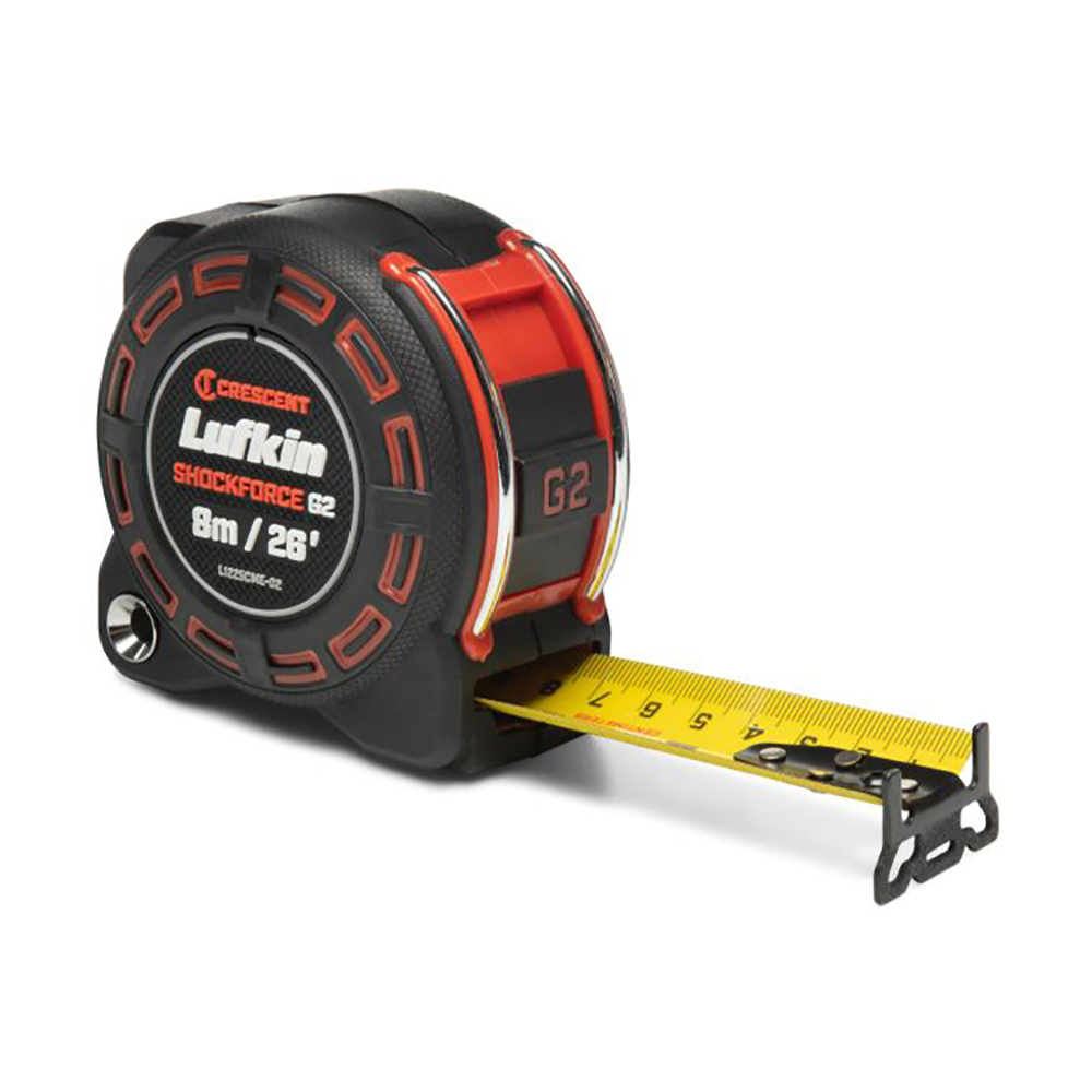 Lufkin SHOCKFORCE™ Tape Measures are engineered for the harshest jobsite conditions, offering durability, visibility, and performance. Each tape features a high-contrast NITE EYE™ blade with 3X clear-coat protection and a mylar-coated first 6 inches to resist wear and tear. Housed in an impact-resistant case drop-tested from 120 feet, SHOCKFORCE delivers industry-leading toughness with stable reach, standout, and secure grip in the most demanding environments.