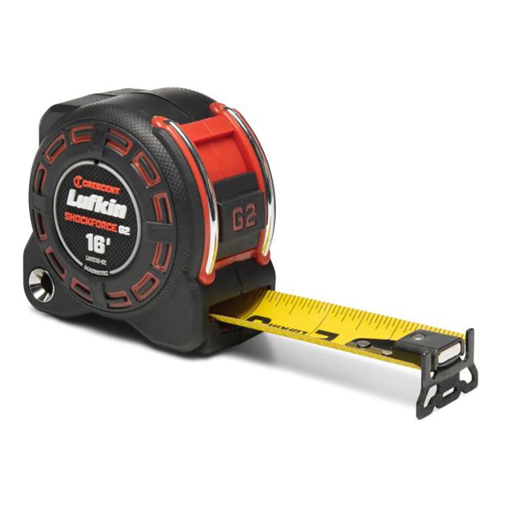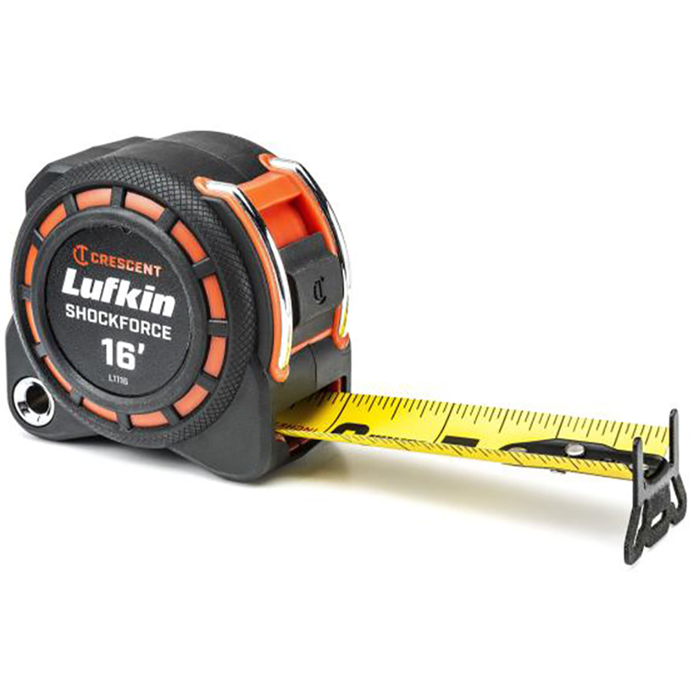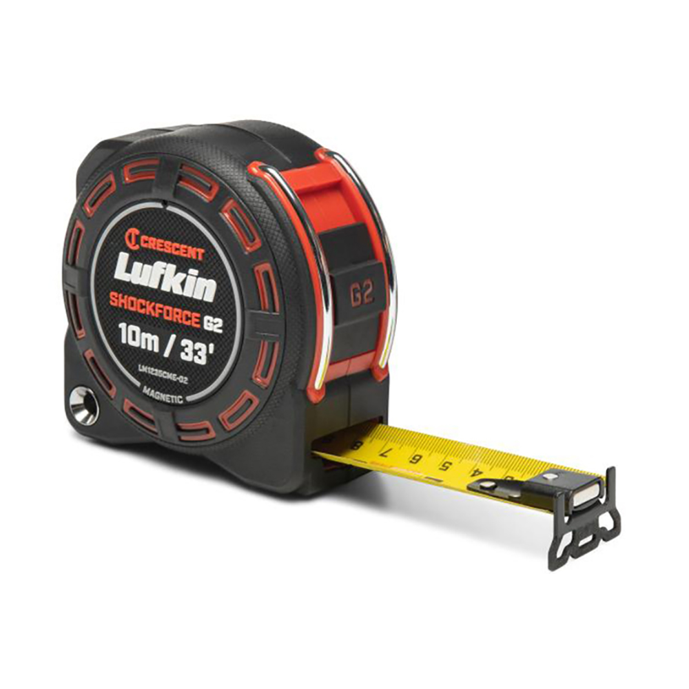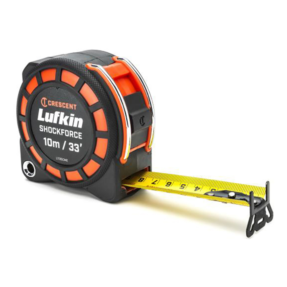Lufkin SHOCKFORCE™ Tape Measures are engineered for the harshest jobsite conditions, offering durability, visibility, and performance. Each tape features a high-contrast NITE EYE™ blade with 3X clear-coat protection and a mylar-coated first 6 inches to resist wear and tear. Housed in an impact-resistant case drop-tested from 120 feet, SHOCKFORCE delivers industry-leading toughness with stable reach, standout, and secure grip in the most demanding environments.