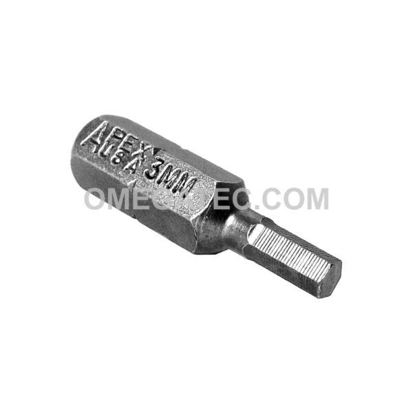 Apex® 185-3MM 3mm Socket Head Metric Insert Bits, 1/4” Hex Drive. Hex Size: 3mm Overall Length: 1” / 25mm