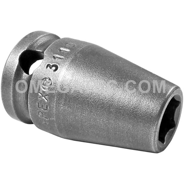 Apex® 3110 5/16” 6-Point Standard Impact Socket, 3/8” Square Drive. Socket Type: 6-Point Hex Opening: 5/16” Overall Length: 1-1/4” Nose End Diameter: 1/2” Drive End Diameter: 3/4” Opening Depth: 3/16”