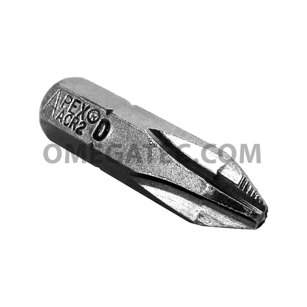 Apex® 440-1-ACR1-DX #1 Phillips® ACR Insert Bits, 1/4” Hex Drive. Point Size: #1 Drive Type: Hex Insert Drive Size: 1/4” Hex Drive Overall Length: 1” Bit Type: Drive Side ACR