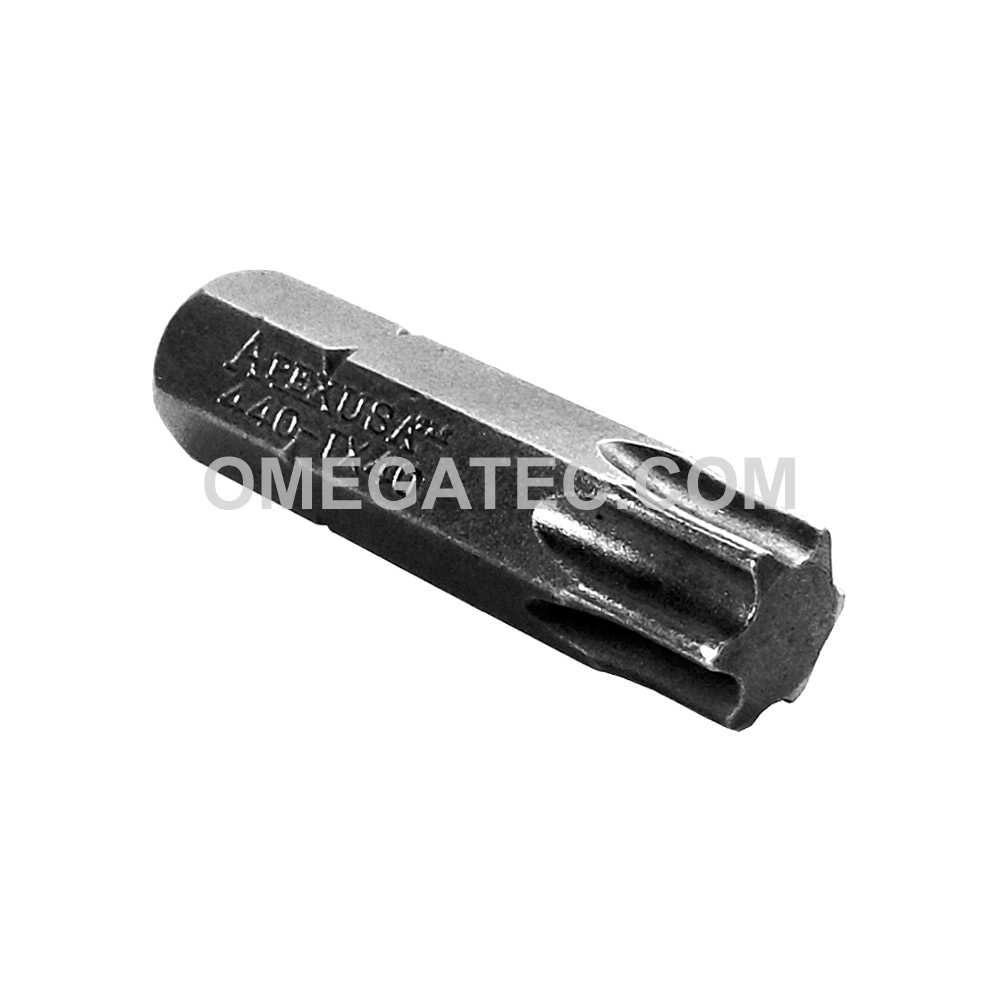 Apex® 440-TX-06X T-06 Torx Insert Bits, 1/4” Hex Drive. Driver Size: T-06 Major Diameter: 0.065” Overall Length: 1” / 25mm