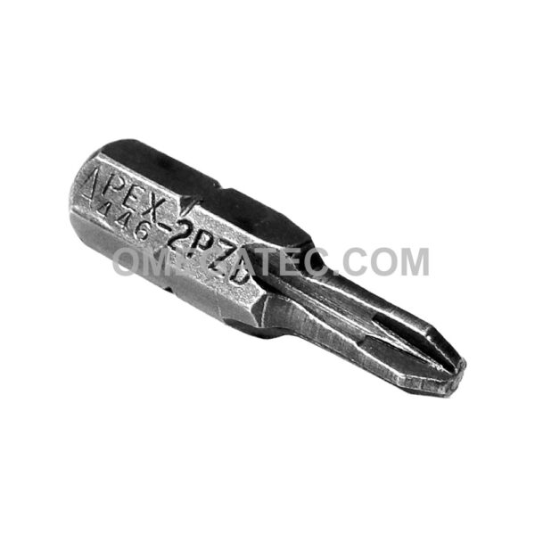 Apex® 446-2-PZDX #2 Pozidriv Insert Bits, 1/4” Hex Drive. Point Size: #2 Overall Length: 1” / 25mm Turned Length: 7/16” / 11mm Turned OD: 0.18” / 4.6mm Drive Type: Hex Insert Drive Size: 1/4” Hex Drive UPC Code: 69709927778