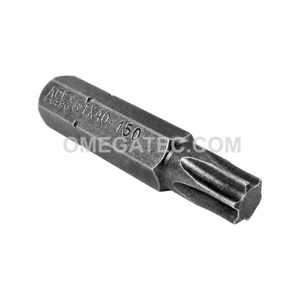 Apex® 480-TX-40-150 T-40 Torx Insert Bits, 5/16” Hex Drive. Driver Size: T-40 Major Diameter: 0.260” Overall Length: 1-1/2” / 39mm