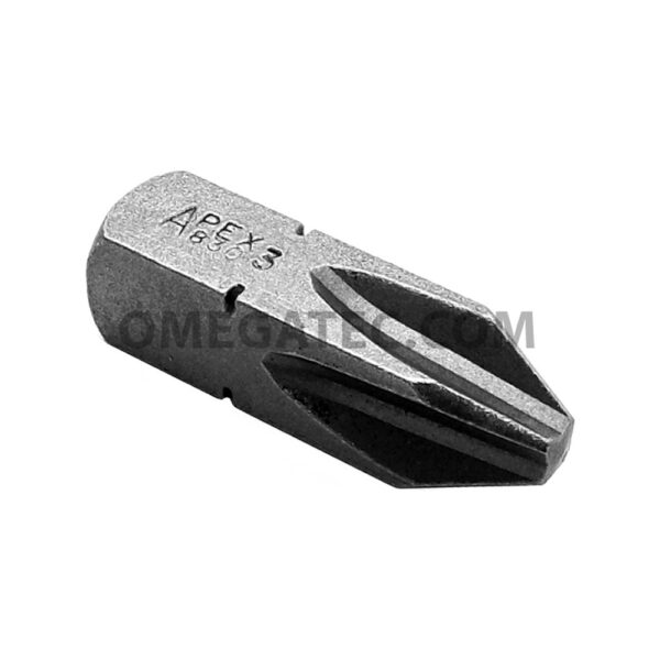 Apex® 830-3X #3 Phillips® Insert Bits, 5/16” Square Drive. Point Size: #3 Drive Type: Square Drive Insert Drive Size: 5/16” Overall Length: 1-1/8”
