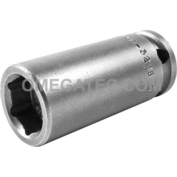 Apex® MB-3218 9/16” 6-Point Long Impact Socket, Magnetic, 3/8” Square Drive. Socket Type: 6-Point Hex Opening: 9/16” Overall Length: 2” Nose End Diameter: 7/8” Drive End Diameter: 7/8” Opening Depth: 7/16”