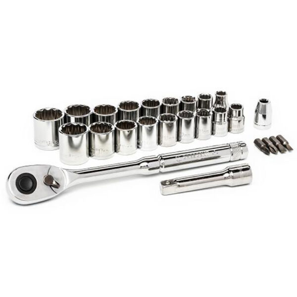 CSWS7C Crescent 25PC 3/8” Drive 12 Point Standard SAE/Metric Mechanics Tool Set features: