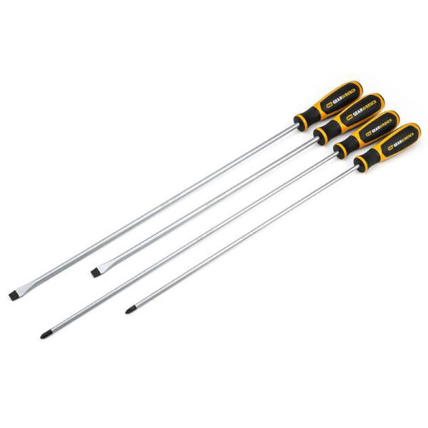 GearWrench 80069H 4 Pc. Phillips/Slotted Dual Material Screwdriver Set The GearWrench 80069H 4 Pc. Phillips/Slotted Dual Material Screwdriver Set is engineered to excel in challenging fastening tasks. With their extra-long blade, they provide enhanced access to recessed fasteners, ensuring you can reach even the most tucked-away screws. The “Speed Zone” handle design allows for rapid rotation in low-torque applications, increasing your efficiency. These screwdrivers feature a dual-material handle that not only offers a comfortable grip but also elevates performance. Whether you’re a professional or a DIY enthusiast, the GearWrench 80069H 4 Pc. Phillips/Slotted Dual Material Screwdriver Set is your trusted companion for precision and convenience, making complex jobs feel like a breeze. Upgrade your toolkit with these exceptional screwdrivers today.