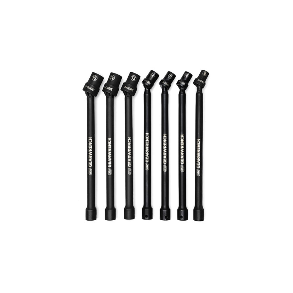 GearWrench 84490 3/8” Drive 6 Point X-Core Pinless Universal Impact Metric Extension Socket 10mm The GearWrench 84490 3/8” Drive 6 Point X-Core Pinless Universal Impact Metric Extension Socket 10mm has a X-Core™ pinless joint design for increased strength and durability with a 30° maximum operating flex angle and smooth 360° rotation for easier access. Compared to even the best pinned impacts, X-Core™ Pinless impact tools deliver far greater durability and superior access. The exclusive four-lug ball-and-socket design of these GEARWRENCH universal-joints, sockets, and extensions provides the long-lasting strength and capability needed to take on the toughest automotive and industrial applications. When durability is key, the choice is clear. GEARWRENCH X-Core™ pinless.