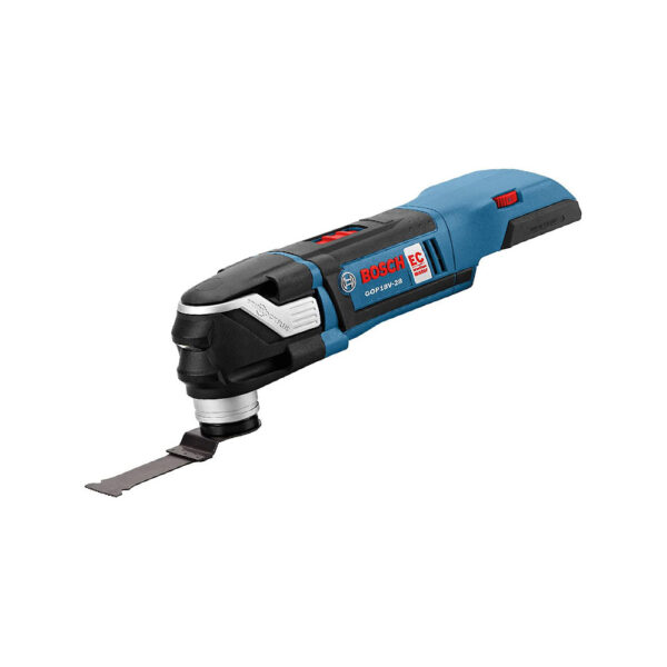 GOP18V-28N Bosch 18V Brushless StarlockPlus Oscillating Multi-Tool. Battery Voltage: 18V Height: 3.2” Length: 12.6” Material: Plastic Composite and Aluminum Oscillating Angle: L / R: 1.4° (2.8° Total) Oscillations Per Minute: 8,000-20,000