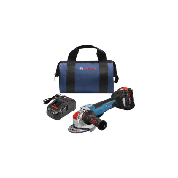 GWX18V-50PCB14 Bosch 18V X-Lock Brushless Connected Ready 4-1/2”-5” Angle Grinder Kit, w/ (1) CORE18V 8.0 Ah Performance Battery The GWX18V-50PCB14 Bosch 18V X-Lock Brushless Connected Ready 4-1/2”-5” Angle Grinder Kit features a tool with the X-LOCK mount, offering a wheel change interface that’s up to five times faster than conventional interfaces. Theres an audible snap when mounting an X-LOCK Wheel on an X-LOCK grinder. The wheel on GWX18V-50PCB14 Bosch 18V X-Lock Brushless Connected Ready 4-1/2”-5” Angle Grinder Kit mounts properly without the need for a spanner wrench or flange nuts. The wheel is released from the grinder with the pull of a lever. The grinders brushless provides greater efficiency that maximizes runtime and productivity. It has power equivalent to a 10-amp corded grinder. The grinder provides an X-Brake, which helps provide a rapid stop of the wheel when the switch is turned off.