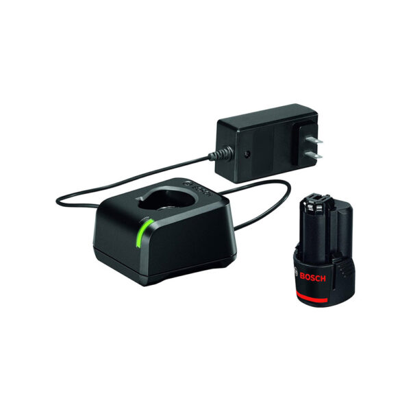 GXS12V-01N12 Bosch 12V Max Lithium-Ion Battery and Charger Starter Kit. Battery Chemistry: Lithium Ion Battery Voltage: 12V Includes: (1) BAT414 12V Max Lithium-Ion 2.0 Ah Battery, (1) GAL12V-20 12V Max Charger