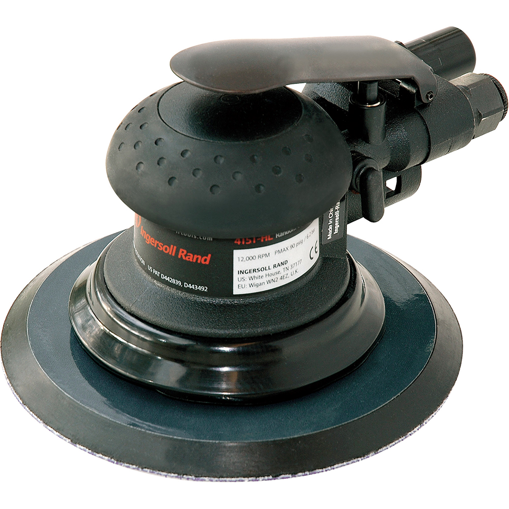 Ingersoll Rand 4151-5 5” Vinyl Pad Random Orbital Air Sander, 12000 RPM. Actuation/Throttle Type/Switch Type: Lever Air Inlet: 1/4” NPT Air Pressure (PSI): 90 PSI Arbor/Collet: 5/16”-24 Thread Average Air Consumption (cfm): 8 cfm