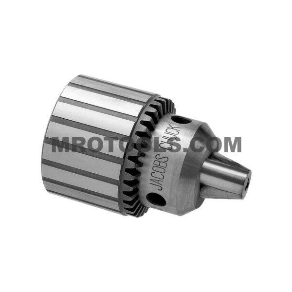 Jacobs Taper Mounted Chuck, Medium Duty Jacobs plain bearing taper mounted chucks feature jaws center-ground for absolute straightness and alignment and a one-piece sleeve that eliminates cracks between driving teeth often found in other designs. Jacobs plain bearing taper mounted chucks feature through-hardened sleeve teeth, plus hardened nose and keyholes provide outstanding wear resistance. Each chuck 100% inspected for performance and precision. T.I.R. .004” maximum at half capacity.