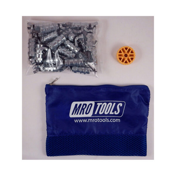 The KWN1S25-3/32 Set of 25 3/32 Standard Wing-Nut Cleco Fasteners w/ HBHT Tool & Carry Bag comes with a durable, polyester zippered carry bag (6” H x 8.5” W)