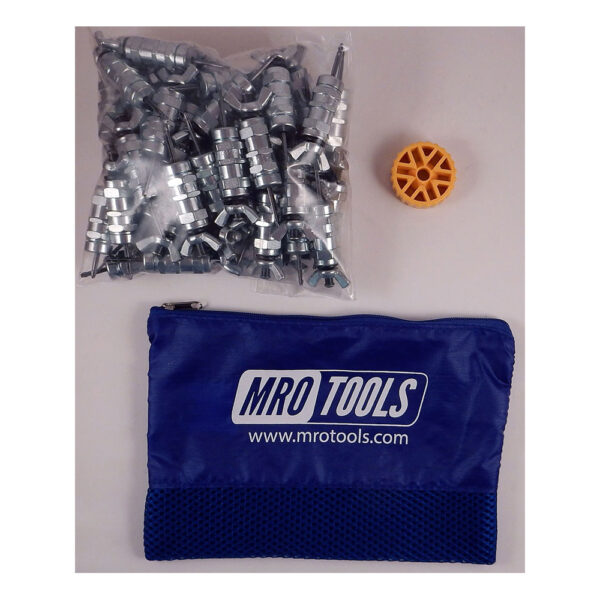 The KWN1S50-3/32 Set of 50 3/32 Standard Wing-Nut Cleco Fasteners w/ HBHT Tool & Carry Bag comes with a durable, polyester zippered carry bag (6” H x 8.5” W)