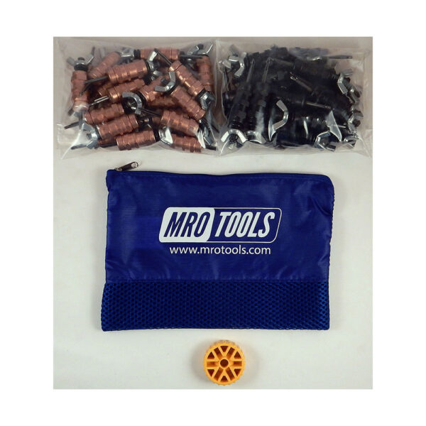The KWN4S50-2 Set of 25 1/8” & 25 5/32” Standard Wing-Nut Cleco Fastener w/ HBHT Tool & Carry Bag comes with a durable, polyester zippered carry bag (6” H x 8.5” W)