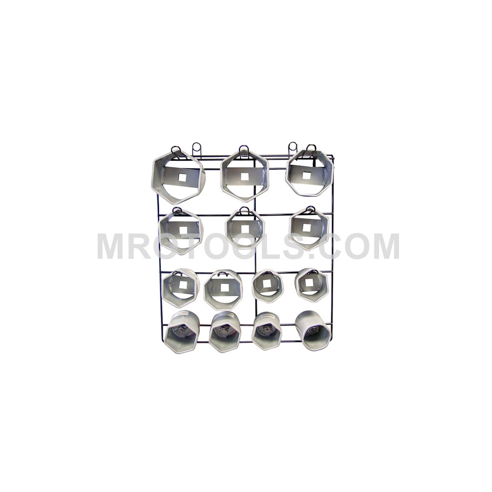 Lang 14 Piece Axle Nut Display includes rack, header and one of each: 6-Point Sockets: 2-3/8”, 3”, 3-1/4”, 3-1/2”, 4”, 4-1/8”, 2-1/4”, 2-1/2”, 2-5/8”, 2-3/4”, 2-9/16”, 8-Point Sockets: 3-1/4”, 3-3/4”, 3-13/16”.