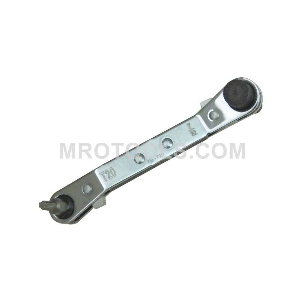 Lang Drain Plug Wrench. Fits 3/8 and 1/2 square female drain plugs. Add a socket to the wrench for use on male six-point drain plugs. Can also be used on serpentine belt tensioners.