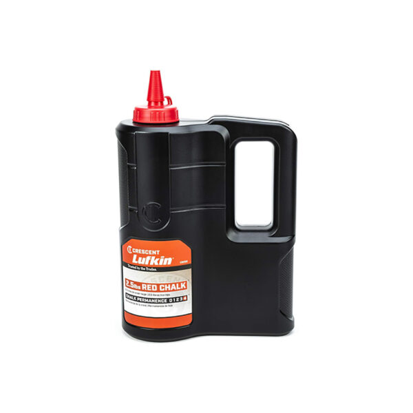 Lufkin CB25R 2.5lbs Red Chalk Refill. Overall Length: 9.85” Packaging: Bottle Weight (Catalog): 2.750lbs Warranty: None Chalk Volume: 2.5lbs Overall Height: 3.1” UPC: 037103336699 Chalk Color: Red Overall Width: 7.3”