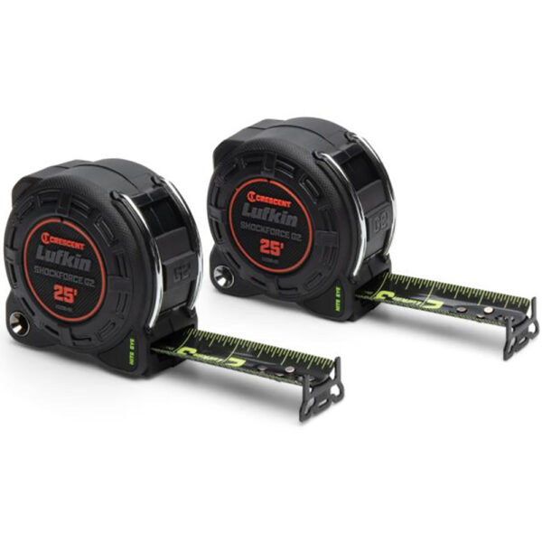 Lufkin L1225BSET2V-02 1-1/4” x 25′ Shockforce Nite Eye G2 Tape Measure – 2PK. Measurement Type: SAE Blade Style: A24 Tether Ready: Yes Blade Finish: Abrasion Resistant Coating Overall Length: 10.1” Family Name: Shockforce™ Packaging: Carded