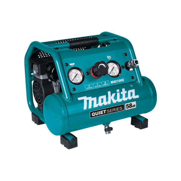 Featuring the innovative Quiet Series Design, the MAC100Q Makita Quiet Series 1/2 HP, 1 Gallon Compact, Oil-Free, Electric Air Compressor combines strong performance with lower noise levels. With an operating noise level of only 58 dBA, it is perfect for indoor use during case and base installation, trim and finish carpentry, cabinet or furniture making, and more. Experience a quieter work environment without compromising on power.