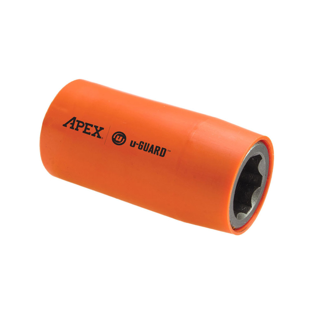 Apex UG-SW-282-D Standard 12-Point u-Guard Impact Socket, SAE, Non-Magnetic, 1/2” Square Drive. Fastener End Size: 3/4” Fastener End Shape: Double Hex Overall Length: 1.03” / 26.2mm Drive Size: 1/2” Square Drive
