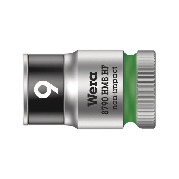 Wera 05003743001 8790 HMB HF 3/8” Zyklop Socket w/ Holding Function. Tip Size: 9.0mm Total Length: 29.0mm External Dimension: 15.7mm Diameter Rear: 17.5mm Tip Height: 6.5mm