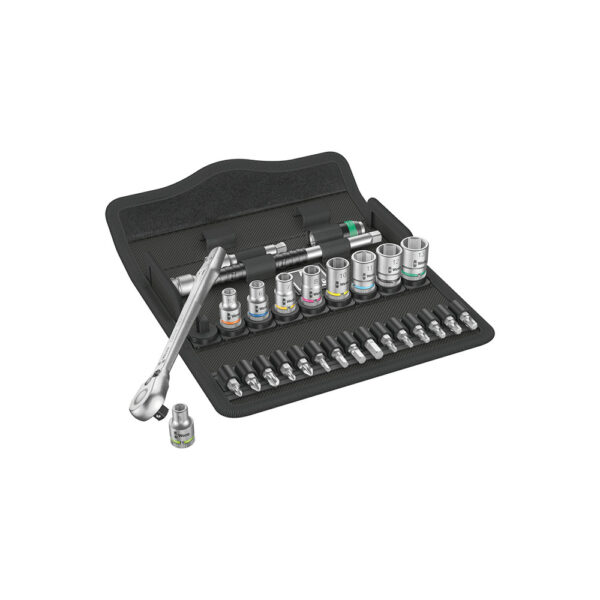 Wera 05004018001 28 Pc. 8100 SA 8 1/4” Zyklop Metric Metal Ratchet Set w/ Switch Lever Description