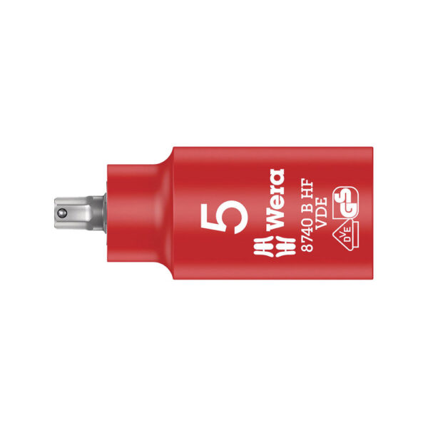 05004902001Wera 8740 B VDE HF 3/8” Drive Insulated Zyklop Hex Bit Sockets are insulated and individually tested as per IEC 60900. Wera 8740 B VDE HF 3/8” Drive Insulated Zyklop Hex Bit Sockets feature increased safety due to the 2-component insulation with yellow insulation core which becomes visible in case of damage to the outer red VDE insulation layer. Wera 8740 B VDE HF 3/8” Drive Insulated Zyklop Hex Bit Sockets are designed with Holding Function which holds screws securely to the tool and are extremely short and compact for easy work even in confined spaces.