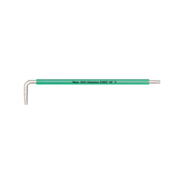 The Wera 05022681001 3967 SXL HF TORX Multicolor Stainless Long L-Key w/ Holding Function is a high quality stainless steel L-key for internal TORX® screws. Very corrosion-resistant due to ice-hardened stainless steel material of the L-key, avoiding the transmission of extraneous rust in stainless steel screw connections. With holding function on the long arm: The clamping force resulting from the surface pressure between the output tip and the screw profile holds the screws securely on the tool.