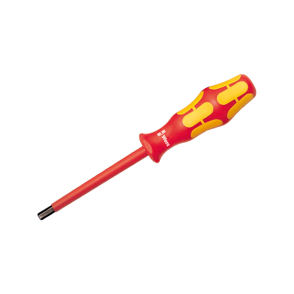 Wera 05031581001 1160 I VDE Kraftform Comfort Insulated Slotted Screwdriver. Blade Thickness: 0.5mm Blade Width: 3.0mm / 1/8” Blade Length: 100mm / 4” Handle Length: 81mm