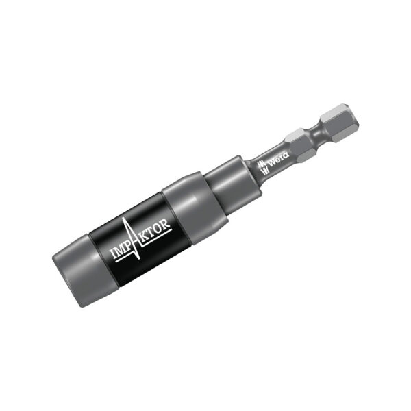 Wera 05057676001 897/4 1/4” Hex IMP R Impaktor Bit Holder w/ Retaining Ring and Magnet is for the absorption of impulse peaks with particular torsion effect thanks to the double-torsion spring.