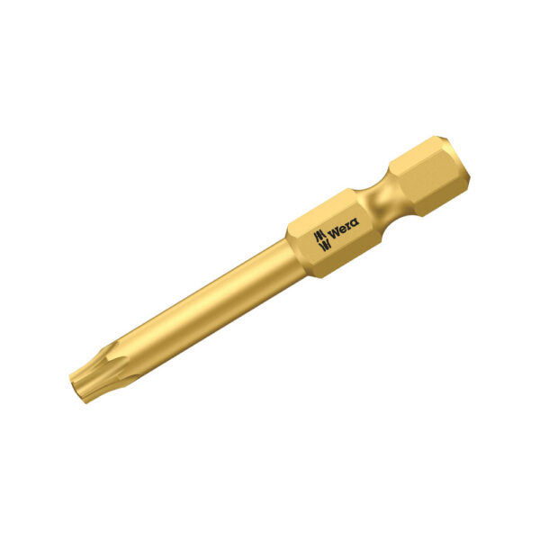 Wera 867/4 HF 1/4” Hex Torx Power Drive Bit w/ Holding Function work because of the wedging forces resulting from the contact pressure between the drive tip and the screw profile securely hold the screw on the tool. Wera 867/4 HF 1/4” Hex Torx Power Drive Bit w/ Holding Function are suitable for holders as per DIN ISO 1173-F 6.3.