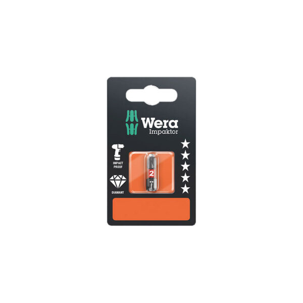 05073916001 Wera 851/1 IMP DC SB Impaktor Phillips 1/4” Hex Insert Bits are designed for phillips screws. Wera 851/1 IMP DC SB Impaktor Phillips 1/4” Hex Insert Bits feature impaktor technology for above-average service life and are particularly suitable for use with customary impact drivers.