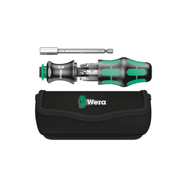 The Wera 05134491001 6 Pc. Kraftform Kompakt 28 w/ Pouch is a quality Wera tool set in a robust pouch. Features Rapidaptor for rapid-in, rapid-out, rapid-spin, chuck-all and single-hand technology. Features a Kraftform holder with Rapidaptor quick-release chuck, along with tough viscous bits for universal use. The torsion design of the bits against premature wear, ensuring optimal tool life.